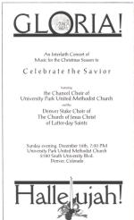 With 2001 rapidly coming to a close, Jen put on a big kick down the home stretch of the Music Stage. Jen joined the Denver Stake Choir in an interfaith concert with the Chancel Choir of the University Park United Methodist Church. The concert was a big success and everyone is talking about making it an annual tradition.