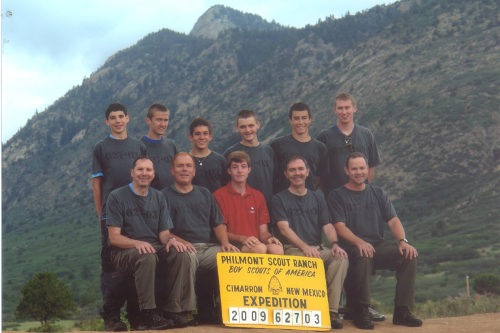 Will (standing, second from left) and Harrison (standing, first from right) at Philmont Scout Ranch, Cimarron, New Mexico